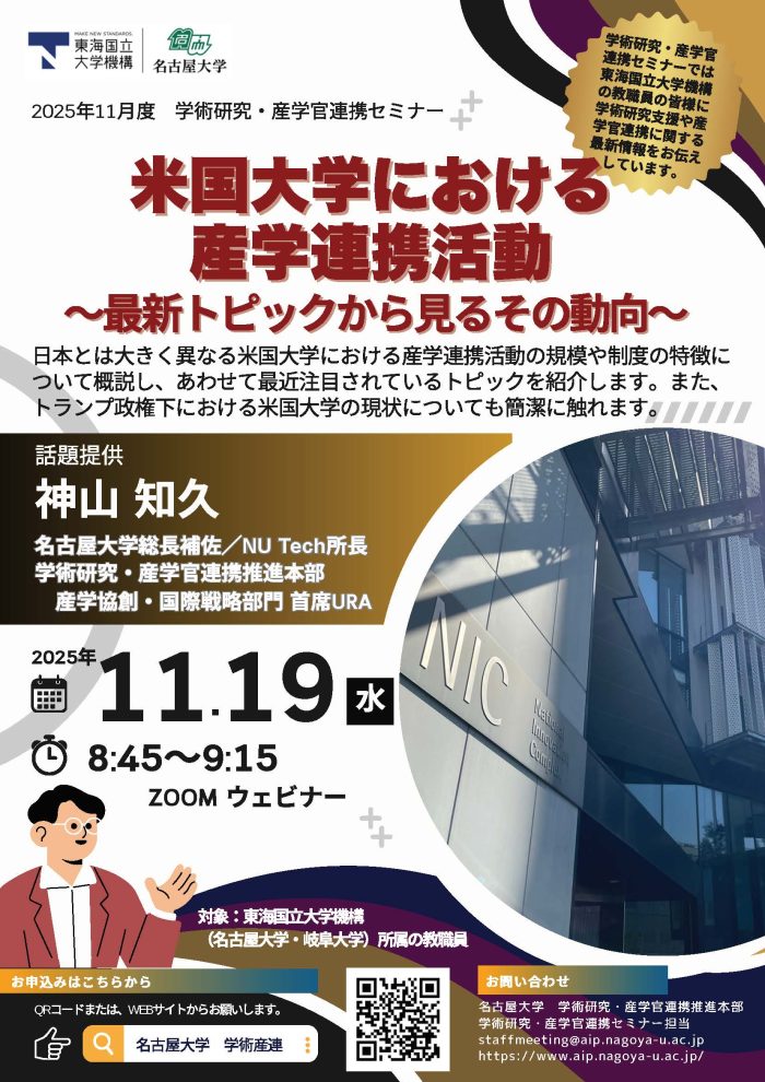 ・話題提供:神山 知久(名古屋大学総長補佐/NU Tech所長/学術研究・産学官連携推進本部 産学協創・国際戦略部門 首席URA)