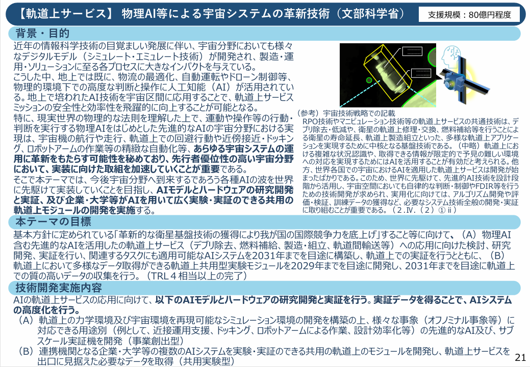 【衛星等分野】物理AI等による宇宙システムの革新技術