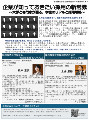 本セミナーでは、学生が企業に求めるポイントや、学生との繋がりを持つための新たな取組みを中心に、