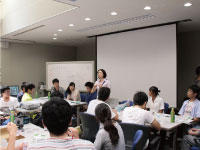 日時:2015年8月4日(火)10:00-17:00 講師:田嶋 聡美(名古屋大学大学院工学研究科附属プラズマナノ工学研究センター特任准教授) 会場:名古屋大学ベンチャービジネスラボラトリー ベンチャーホール 主催:名古屋大学大学院工学研究科 共催:名古屋大学学術研究・産学官連携推進本部 半導体加工用ガス中のC、N、O、Fと 材料表面の反応を走査型電子顕微鏡や分子軌道法を用いて紹介しました。高校生は分子模型構築や数値解析をチームで協力して完成させ和気あいあいと科学の楽しさを堪能していました。(日本学術振興会委託事業)