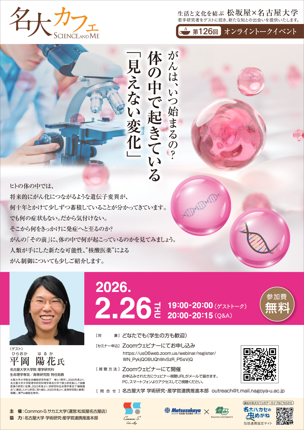 第126回 名大カフェ「がんは、いつ始まるの?-体の中で起きている「見えない変化」-」2026年2月26日開催