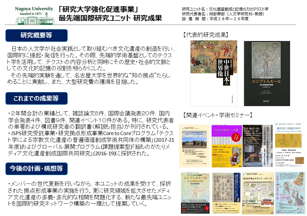 文化遺産創成と記憶の力のテクスト学 【活動期間: 平成28年度~平成29年度】